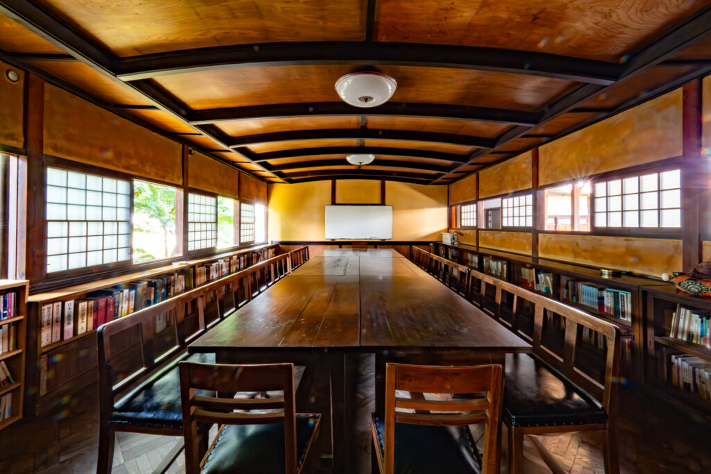 設備禅堂・中庭・寮舎食堂など、修行の場として設計された施設を研修プログラムに合わせて利用いただけます。図書室・研究室ではプロジェクターを用いたセミナーやディスカッションも可能です。