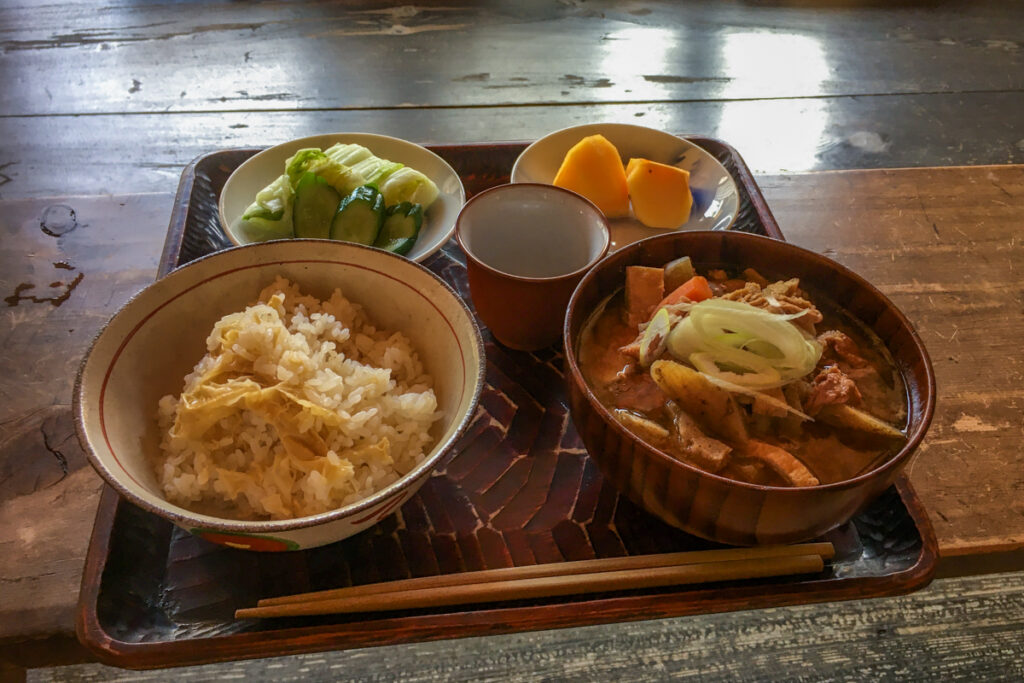 作務の後は、長谷川塾頭お手製の昼食を、食堂にて作法に則っていただきました。